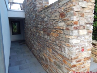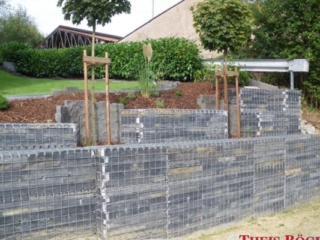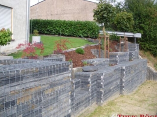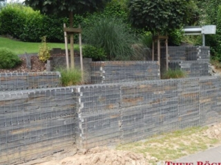 Eine massive, vorgemauerte Natursteinfassade verbindet Spitzenästhetik mit höchster Handwerkskunst. Ebenso erfreuen sich mit Splitt hinterfüllte Gabionen einer immer größeren Beliebtheit. Sie bilden eine moderne Form des Mauerbaus und dienen u.a. zum Abfangen von Böschungen oder zum Sicht- und Lärmschutz. Die Gitterkörbe sind in verschiedenen Abmessungen erhältlich und sind auf Wunsch transportabel, weshalb sie sich problemlos umplatzieren lassen.